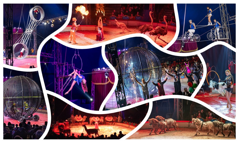 Chybět nebudou ani zvířecí hvězdy – velbloudi, africký i skotský dobytek, afričtí pštrosi, hadi, poníci, border kolie a naše velká chlouba: klokan rudokrký Skypy, jediný klokan v cirkuse ve střední Evropě.